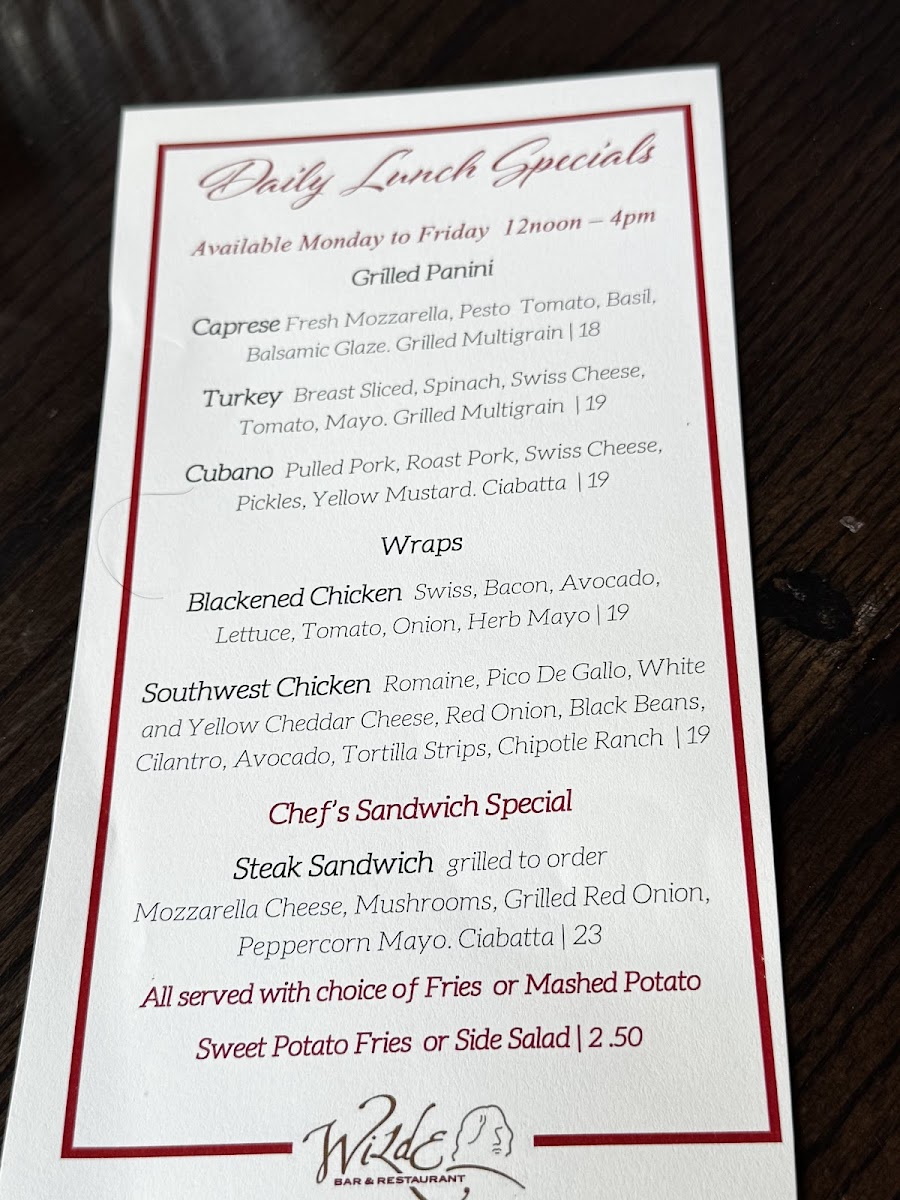 Two fried eggs, cherrywood smoked bacon, aged white cheddar, grilled onion, tomato, toasted Tuscan bread. Brunch potatoes.